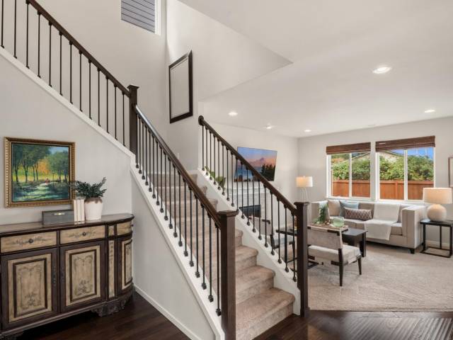 Welcome to this stunning Harbor Homes resale in RidgeCrest Park! This south-facing home is boarded to the north and east by a protect nature preserve/greenbelt - offering unmatched privacy and breathtaking, unobstructed mountain views to the east. Inside, enjoy a grand staircase, open-concept living, cozy fireplace, Wi-Fi smart home features throughout, and a gourmet kitchen with slab granite and stainless appliances. The spa-inspired primary suite features a 5-piece bath and walk-in closet. Outside: low-maintenance yard with an expansive paver patio, and raised planter wall. All located within a friendly and quiet neighborhood but close to commuter routes and more!